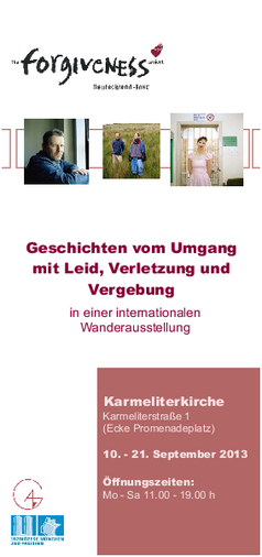 WeiterlesenAm Montag, den 9. September 2013, wurde die internationale Wanderausstellung „Forgiveness“ eröffnet, die die Ackermann-Gemeinde in Zusammenarbeit mit dem Erzbischöflichen Ordinariat München und…