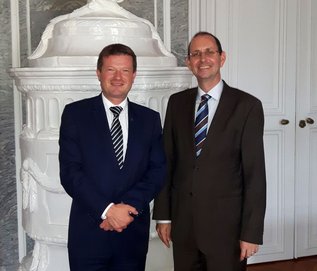 Kastler sagte dem neuen Botschafter im Namen der Ackermann-Gemeinde ein herzliches Willkommen an der Moldau. "Für ihre neue Aufgabe wünsche ich Ihnen eine gute Einarbeitung, viel Erfolg und Gottes reichen Segen. Wir freuen uns darauf, auch mit Ihnen den engen und intensiven Kontakt mit der Prager Botschaft fortzusetzen," so der Bundesvorsitzende.
