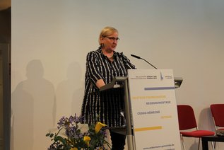Grüße von Botschafter Podivínský übermittelte Generalkonsulin Kristina Larischová. „Deutschland und Tschechien stehen für ein freies und offenes Europa“, bekräftigte sie in ihrem Grußwort und sprach von einem sehr guten Verhältnis der beiden Staaten. Dies beruhe auf einer vorausschauenden Politik und sei „das Ergebnis der Arbeit vieler Menschen, die sich für eine freundschaftliche Nachbarschaft einsetzen“. In diesem Kontext würdigte sie das langjährige Engagement der Ackermänner und -frauen als „solides und breites Fundament der Nachbarschaft“. Den EU-Beitritt Tschechiens vor 15 Jahren sprach die Generalkonsulin ebenfalls an, da dieser einen „Profit für die alten und die neuen Mitgliedstaaten“ gebracht habe. Den momentanen Anflügen von Skepsis und Pessimismus hielt Larischová den Wunsch entgegen, „dass es immer mehr Menschen gibt, denen es bewusst ist, dass das heutige Europa das Beste ist, in dem wir leben und das wir teilen können. Jeder von uns kann und soll zu einem gemeinsamen Europa beitragen“, schloss die Generalkonsulin ihr Grußwort.