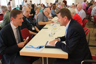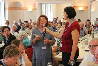 Der Artikel 1 des deutschen Grundgesetzes „Die Würde des Menschen ist unantastbar“ ist für den Landtagsabgeordneten Tobias Gotthardt die Grundmaxime, an der nie gerüttelt werden dürfe. Auch die Idee Europa dürfe nicht in Frage gestellt werden. Im Gegenteil: daran müsse man kontinuierlich arbeiten und Fehlentwicklungen korrigieren. Für Gotthardt ist wichtig, dass ein Politiker den christlichen Glauben lebt und (Alltags-)Entscheidungen mit den christlichen Grundwerten vereinbar sind. „Man muss Europa mit dem Herzen spüren können. Dann haben wir eine große Zukunft. Europa braucht das Herz und jeden Einzelnen von uns“, appellierte der Abgeordnete an die Tagungsteilnehmer. Die Solidarität (Flüchtlingsthema, Umwelt/Klima) ist für Gräfin Róża zu Thun-Hohenstein ebenso wichtig. Dabei geht es ihr auch darum, gemeinsam Lösungen zu finden und Nähe zu den Bürgern aufzubauen. Mit der jüngsten Wahl der EU-Kommissionspräsidentin sei dies nicht gut gelungen. „Demokratie kann ohne christliche Werte nicht bestehen. Aber wie praktizieren wir die christlichen Werte, dass es ausstrahlt?“, fragte die EU-Abgeordnete in die Runde.