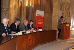 Mit der Frage „Ist die EU von heute wirklich alternativlos“ beschäftigten sich in seinem Einführungsvortrag am Samstagvormittag der Prager Philosoph und Politiker Dr. Daniel Kroupa und die daran anschließende Podiumsdiskussion. Kroupa verwies auf euroskeptische Positionen, die – auch wegen mangelnder Demokratie – eine Auflösung der Europäischen Union beinhalten. Doch bei einem Zerfall Europas in „einzelne, egoistische Nationalstaaten“ wäre, so Kroupa, die Souveränität kleiner Staaten bedroht. Eine andere, jedoch nicht zu erwartende Alternative wäre ein „Superstaat“. Für Kroupa kann es nur eine demokratischere EU geben, was zugleich bedeutet, dass die jetzige EU transformiert und effizienter gestaltet werden muss – zum Beispiel hin zu einer gemeinsamen Steuerpolitik. Doch dies oder auch die Übergabe der Außenpolitik an die EU, eine gemeinsame Umwelt- und Friedenspolitik seien bis heute nicht möglich, weil es, so Kroupa, an gemeinsamen Werten mangelt. „Wenn wir nach der europäischen Einheit suchen, müssen wir die Einheit der Werte finden, für die es sich zu leben lohnt“, fasste der Philosoph und Politiker zusammen. Gegen die Rückkehr zum Nationalstaat sprach sich auch Dr. Vladimír Špidla, ehemaliger EU-Kommissar und heute Direktor der Demokratischen Masaryk-Akademie in Prag, aus. „Die EU ist eine Wiedererschaffung Europas, eine gute und erfolgreiche Antwort auf den Zweiten Weltkrieg und wird auch eine gute Antwort auf die bevorstehenden Aufgaben sein“, meinte Špidla voller Optimismus, fürchtet aber auch neue Eskalationen und verwies auf die „globale Mission Europas“. Die Vorbildfunktion betonte auch Martin Kastler MdEP, der aber etwa die Wahl eines europäischen Präsidenten oder das Antreten europäischer Parteien für einen Traum bzw. als spannend betrachtet. Vielmehr verwies Kastler auf die Prinzipien der christlichen Soziallehre bzw. das nachhaltige Prinzip. „Wir haben in Europa viel zu stark von der Substanz gelebt. Wir wollen Europa nicht auf den Schuldenbergen, sondern auf den Hügeln der Demokratie und des Rechtsstaates bauen“, fasste der Europaparlamentarier zusammen, der auch eine einheitliche Außen- und Sicherheitspolitik auf europäischer Basis anmahnte. Auf die unterschiedliche Interpretation der Werte machte der aus Budapest stammende Historiker Gábor Egry aufmerksam und schlug einen Dialog zum gegenseitigen Verständnis vor. Für die ungarische Gesellschaft stellte er ein eher ambivalentes Verhältnis zu Europa fest – auch „als Ergebnis eines Integrationsprozesses, der zuviel mit der materiellen, weniger mit der geistig-ideellen Seite“ zu tun hatte.