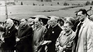 „Die Ackermann-Gemeinde ist aber nicht bei diesen Aspekten stehengeblieben“, führte Zimmermann weiter aus. Damit kam er zur Aussage ebenfalls von Pater Paulus beim Treffen der Ackermann-Gemeinde in Haidmühle im Jahr 1955. Der Hauptgedanke sei hier gewesen, dass das Unrecht nicht erst im Jahr 1945 begonnen habe, sondern man auch für alles einstehen müsse, was vorher passiert sei. „Das Schuldbekenntnis muss in die Vergangenheit eingreifen - auch Jahrhunderte zurück“, konkretisierte der Referent. Demnach gehe es nicht nur um die Verurteilung der Vertreibung, sondern auch um „kritische Gedanken zur Zeit vor der Vertreibung und das Bekenntnis eigener Schuld seitens der Sudetendeutschen“. Dieses Element sei im Jahr 2001 in der Ellwanger Erklärung der Ackermann-Gemeinde nochmals sehr deutlich benannt worden.