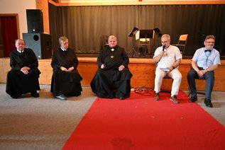 Den Abschluss des Begegnungstages bildete die Gedenkfeier für den am 24. August 1999 im Kloster Rohr bei einem Besuch verstorbenen Erzabt Anastáz Opasek. In dem von Dr. Petr Křížek moderierten Gesprächskreis erinnerten sich der Altabt der Rohrer Benediktinerabtei Gregor Zippel, Prior Frater Franz Neuhausen und der jetzige Erzabt des Klosters Břevnov Prokop Siostrzonek. Zunächst aber gab der Historiker Manfred Heerdegen einen Einblick in Opaseks Vita. In Wien kam dieser am 20. April 1913 auf die Welt, sechs Jahre später zog die Familie nach Kolín an der Elbe. Nach dem Abitur trat der junge Mann im Jahr 1932 ins Benediktinerkloster Břevnov ein und erhielt im Orden und an der Universität in Prag und in Rom seine Ausbildung. Am 11. Juli 1938 wurde er zum Priester geweiht, er galt als „aufstrebender Mann im Konvent“. Doch ab Herbst 1938 wurde angesichts der politischen Entwicklungen die Situation für den in Braunau und Břevnov angesiedelten Konvent schwieriger. Es kam zur Teilung der Abtei, Opasek wurde 1939 mit dem Prior-Amt betraut, verbunden mit der Sorge für das gesamte Kloster. Da Teile des Klosters von der deutschen Wehrmacht besetzt waren, musste er auch mit dieser zurecht kommen. Im Geheimen half er Verfolgten des NS-Regimes. Am Ende des Krieges galt seine Sorge besonders dem Kloster in Braunau, was aber durch die Ermordung von zwei Braunauer Benediktinern getrübt wurde – wohlgemerkt am 24. August 1945. Im Frühjahr 1947 wurde er zum 60. Abt des nunmehr eigenständigen Klosters Břevnov gewählt. Ein Jahr später erfolgte die kommunistische Machtübernahme, im Oktober 1948 landete sein Name auf einer für Schauprozesse vorgesehenen Liste, am 19. September 1949 wurde er wegen angeblichen Hochverrats und Spionage verhaftet. Das Todesurteil wurde in lebenslängliche Haft umgewandelt, im Mai 1960 erfolgte die Amnestie – aber unter der Auflage, nicht mehr als Priester bzw. Abt arbeiten zu dürfen, sondern als Bauarbeiter und Lagerist. Während des Prager Frühlings wurde Opasek rehabilitiert und konnte kurz wieder die Priestertätigkeit ausüben. Mit der Niederschlagung des Prager Frühlings war jedoch auch dies wieder vorbei. Ende 1968 erhielt er eine Ausreisegenehmigung nach Wien, von dort kam er 1969 nach Rohr, wo er für etwas mehr als 20 Jahre zusammen mit den vertriebenen Mitbrüdern aus Braunau lebte. Hier gründete er im Jahr 1972 die katholisch orientierte Exilvereinigung Opus Bonum, unterstützte die Charta 77 und hatte Verbindungen weit über das tschechisch-katholisch/christliche Milieu hinaus. Mit der politischen Wende entschied er sich im Mai 1990 zur Rückkehr ins Kloster Břevnov, die Erhebung zur Erzabtei im Jahr 1993 war für ihn ebenso nochmals ein Höhepunkt wie die Begrüßung von Papst Johannes Paul II. im Kloster vier Jahre später. Während eines Besuchs im Kloster Rohr starb Erzabt Opasek am 24. August 1999, in Anwesenheit des damaligen Staatspräsidenten Václav Havel wurde er auf dem Klosterfriedhof in Břevnov beigesetzt.