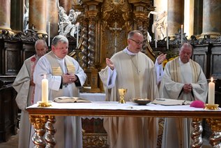 Darauf wies vor dem einleitenden Gottesdienst auch Dr. Albert-Peter Rethmann, der Bundesvorsitzende der Ackermann-Gemeinde, hin, der sich darüber freute, dass die Rohrer Asam-Kirche bis auf den letzten Platz mit Mitgliedern der deutschen Ackermann-Gemeinde und der tschechischen Sdružení Ackermann-Gemeinde besetzt war. Hauptzelebrant war der neue Leitmeritzer Bischof Stanislav Přibyl, der seit März dieses Amt ausübt, doch bei der Ackermann-Gemeinde kein Unbekannter ist.