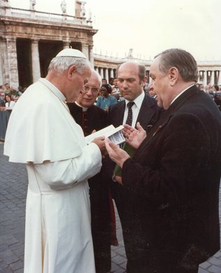 Vieles, was Olbert in seiner Zeit als Generalsekretär der Ackermann-Gemeinde (bis 1999) und ehrenamtlicher Geschäftsführer des Sozialwerks der Ackermann-Gemeinde (bis 2010) auf den Weg bringen konnte, war erst durch die Vernetzung mit anderen Organisationen möglich. So übernahm er Verantwortung als Vorsitzender des Hauptausschusses für Flüchtlinge und Ausgewiesene in Bayern, war Mitglied des Landesvorstands der Union der Vertriebenen in Bayern und Mitglied des Landesvorstands des Bundes der Vertriebenen in Bayern. Auch in der katholischen Kirche engagierte er sich als Präsidiumsmitglied des Katholischen Flüchtlingsrates und der Arbeitsgemeinschaft Katholischer Vertriebenenorganisationen, als Mitglied des Zentralkomitees der deutschen Katholiken und der Menschenrechtskommission der deutschen Sektion von Justitia et Pax sowie des Aktionsausschusses von Renovabis. Dass er von den seinerzeit amtierenden Bundesaußenministerin Fischer, Steinmeier und Westerwelle wiederholt in den Verwaltungsrat des Deutsch-tschechischen Zukunftsfonds berufen wurde (2000-2011), verschaffte Olbert schon ein wenig Genugtuung, eröffnete ihm diese Aufgabe doch eine weitere Chance, die deutsch-tschechische Zusammenarbeit in verantwortlicher Position mitzugestalten. An dieser Stelle kommt man nicht umhin, an Franz Olberts Frau Erika zu erinnern, die 2016 leider viel zu früh verstorben ist. Über Jahrzehnte hielt sie ihm nicht nur den Rücken frei, sondern brachte sich selbst in vielerlei Weise in die Arbeit der Ackermann-Gemeinde ein.