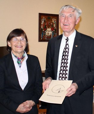 Die Glückwünsche des AG-Bundesvorstands überbrachte die stellvertretende Bundesvorsitzende Dorothea Schroth; sie überreichte Wuchterl für seine Verdienste die Goldene Ehrennadel der Ackermann-Gemeinde.