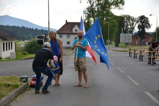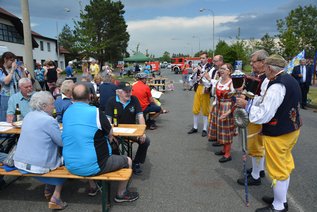 Das Ensemble „Konrádyho dudácká muzika“ (Konrádys Dudelsackmusik) stimmte mit chodischer Musik auf das Treffen von deutschen und tschechischen Freunden ein. Auch Mitglieder der tschechischen Sektion von „Pulse of Europe“ ließen es sich nicht nehmen und kamen mit tschechischer und europäischer Flagge. Zwar hatte es zuvor noch ein wenig genieselt, doch pünktlich mit der Musik zeigte sich wieder die Sonne.