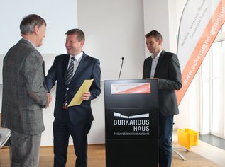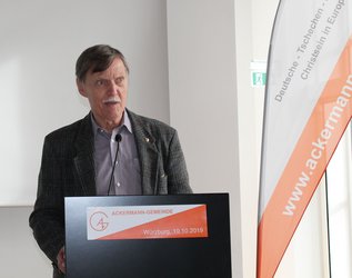 In Sachen Ackermann-Gemeinde war Herwig Steinitz ein „Spätzünder“. Erst 1994 wurde er Mitglied. Doch schnell machte er sich einen Namen und wurde als „Quereinsteiger“ für seine frischen Gedanken geschätzt. Seit 2001 gehörte er dem Bundesvorstand der Ackermann-Gemeinde an und 2004 stieg er zum stellvertretenden Bundesvorsitzenden aus. Bei der Hauptversammlung in Würzburg (Bericht folgt) ehrte der Bundesvorsitzenden Martin Kastler Steinitz mit der Goldenen Ehrennadel der Ackermann-Gemeinde. Der 78-Jährige hatte aus Altersgründen nicht erneut für den Bundesvorstand kandidiert. Kastler hob das theologische und historische Wissen sowie den Blick auf aktuelle gesellschaftliche, politische und kirchliche Entwicklungen hervor. Damit habe Steinitz die Diskussionen im Bundesvorstand stark bereichert. „Zugleich hat er mit seiner vermittelnden Art und seinem Ringen um Kompromisse zu dem freundschaftlichen und konstruktiven Arbeitsklima im Bundesvorstand beigetragen“, dankte Vorsitzender Kastler dem Geehrten.