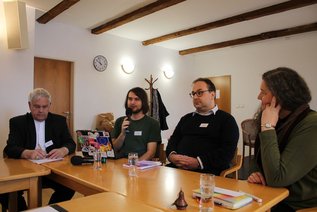 Im Mittelpunkt der Debatte stand auch die Frage, ob und wie die Kirche ein Zuhause für „Heimatlose“, also Vertriebene, sein kann oder wie die Kirche Menschen am Rande der Gesellschaft und Ausgegrenzten helfen kann. Äbtissin Elisabeth Vaterodt OCist aus Marienthal, Beata Bykowska, Theologin und Pädagogin aus Polen, dazu online auch Historiker Jaroslav Šebek nahmen teil.