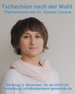 Tschechien nach der Wahl: Themenzoom der Ackermann-Gemeinde mit Dr. Zuzana Lizcová
