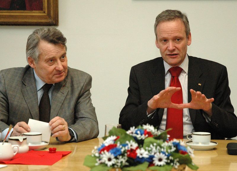 Download: Foto in der Diskussion: AG-Bundesvorsitzender Adolf Ullmann(li.) und Minister Cyril Svoboda