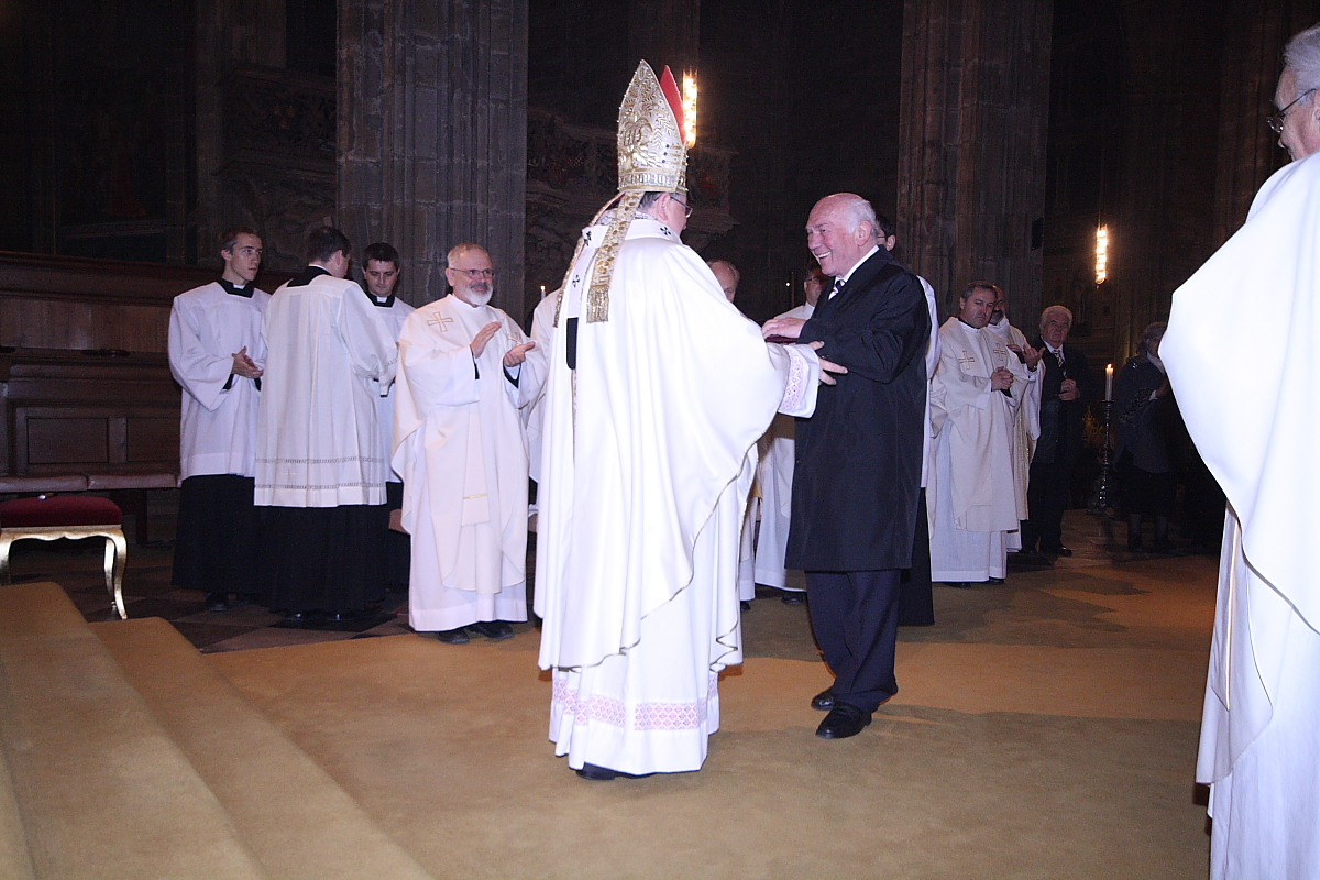 Gleich zwei Auszeichnung, eine bayerische und eine tschechische, erhielt Franz Olbert in den vergangenen Tagen. Die bayerische Europaministerin Emilia Müller würdigte Olbert für sein europäisches Engagement mit der Europamedaille der Bayerischen Staatsregierung. Wenige Tage später konnte der ehemalige Generalsekretär der Ackermann-Gemeinde im Prager Veitsdom die „Goldene Sankt-Adalbert-Medaille“ aus den Händen von Erzbischof Dominik Duka entgegennehmen. Diese doppelte Ehrung zeige, so Martin Kastler MdEP, Bundesvorsitzender der Ackermann-Gemeinde, welch hohes Ansehen Franz Olbert in Deutschland wie in Tschechien gleichermaßen genießt. „Diese Auszeichnungen aus Bayern und Tschechien bekräftigen uns, den von Olbert eingeschlagenen Weg der deutsch-tschechischen Zusammenarbeit ohne Vorbedingungen und den offenen Dialog ohne Tabus konsequent weiterzugehen“, so Kastler.