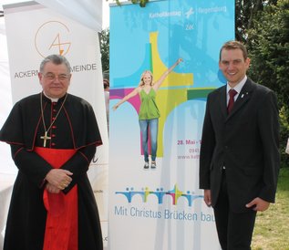 Dörr, der den Katholikentag im Bereich "Globale Verantwortung und Europäische Nachbarschaft" mitverantwortet, freut sich, dass auch durch zahlreiche tschechische Referenten das Motto "Mit Christus Brücken bauen" mit Leben gefüllt wird. Mit Blick auf das Gesamtprogramm könne man sagen, dass „die deutsch-tschechische Nachbarschaft in Regensburg groß geschrieben werde“, so der Bundesgeschäftsführer der Ackermann-Gemeinde. Ein besonderes Highlight in seinen Augen ist die Gesprächsreihe mit Persönlichkeiten aus dem Nachbarland. „Es wird jeweils eine Person mit ihrem Leben und ihrem Wirken im Mittelpunkt stehen. Auf diese Weise wird den Zuhörern ein Blick auf die deutsch-tschechische Geschichte und das Leben in unser Nachbarland gewährt“, erläutert Dörr die Idee hinter der Reihe. Unter dem Titel „Vom Knastbruder zum Kardinal“ wird der Prager Erzbischof Dominik Duka zu Wort kommen. Der neue tschechische Kulturminister Daniel Herman wird in dem Gespräch „Tschechen und Deutsche: was uns verbindet – was uns trennt“ die besondere Beziehung zwischen beiden Völkern behandeln. Weitere Gesprächsgäste in der eigens errichteten "Zeltkirche St. Nepomuk" auf dem Unigelände werden der Pilsener Bischof František Radkovský und der Prager Professor Tomáš Halík sein.