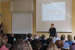 Dr. Michael Weigl von der Universität Passau referierte zum Thema „Demokratie unter Druck? – Rechtspopulismus in Europa“. Zunächst ging er auf den Umbau der „Hinterbühne“ ein. So seien die Grundlagen für die Etablierung der klassischen Parteienstruktur zunehmend fragmentiert und erodiert. Dies sei ein Prozess, der in anderen europäischen Ländern teilweise viel stärker fortgeschritten sei.