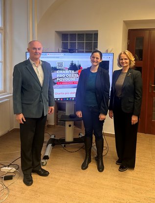 Die Spende in der Höhe von 7.213 Euro konnte Ende November die Bundesgeschäftsführerin der Ackermann-Gemeinde an die Mitarbeiterinnen der Caritas der Tschechischen Republik übergeben: Fundraiserin Stanislava Rollová, Komunikationsleiterin Julie Růžičková und den Pressesprecher Jan Oulík.