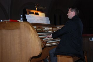 „Es ist nicht alle Tage, dass ein Europaabgeordneter Orgel spielt“, erläuterte Kastler den Konzertbesuchern und bekannte, dass das Spielen dieses Instruments seit vielen Jahren zu seinen Hobbys gehört. Er ließ sich – im Gegensatz zu der Profimusikerin – jedoch nicht auf die Finger schauen und erklomm die Empore, um dort auf der viermanualigen Orgel drei Stücke zum Besten zu geben. Mit dem Präludium in G-Dur von Johann Christian Heinrich Rinck (* 1770 in Ilmenau, + 1846 in Darmstadt) hatte der in Schwabach beheimatete Bundesvorsitzende zunächst einen Komponisten der Romantik ausgewählt. Drei Teile aus einer Orgelsonate von Josef Gabriel Rheinberger (* 1839 in Vaduz, + 1901 in München) trug Kastler dann ebenso bravourös vor wie das „Allegro maestoso in C-Dur“ des Slowaken Mikuláš Moyzes (1872 – 1944).