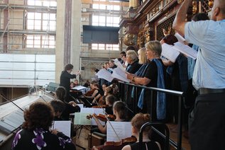 Es ist bereits eine gute Tradition, dass die Begegnungstage mit einer feierlichen Veper beginnen. In der Stiftsbasilika St. Martin begrüßte der Geistliche Beirat der Sdružení Ackermann-Gemeinde, Monsignore Adolf Pintíř, und freut sich: „Es ist eine Ehre, dass wir daran beteiligt sind.“ Er meinte zudem, dass man nicht nur auf 30 Jahre seit der Samtenen Revolution zurückblicken sollte, sondern „auch auf die Zeit der Vertreibung“, um daraus Lehren für die Zukunft in Europa zu ziehen. Die Predigt oblag dem Geistlichen Beirat der Ackermann-Gemeinde Monsignore Dieter Olbrich. Ausgehend von Gesprächen mit Schülern am Gymnasium in Schäftlarn zur Frage „Ist die Kirche überhaupt noch zu retten“ bzw. zu dem Gesichtspunkt, was die Kirche attraktiv machen könne, meinte Msgr. Olbrich, dass die Kirche intellektuell, sozial und politisch sein müsse. „Die Begegnungstage in Landshut orientieren sich an diesen Aspekten“, fasste der Geistliche Beirat zusammen. Zum Gottesdienstthema „Singt ein neues Lied“ wurde eine entsprechend gestaltete Kerze zum Altar gebracht und entzündet. Ferner verteilten Vertreter der Ackermann-Gemeinde und der Sdružení Ackermann-Gemeinde an die Gottesdienstteilnehmer als Zeichen der Aussendung kleine Zettel mit biblischen Versen. Die musikalische Gestaltung der Eröffnungsvesper oblag dem Chor der deutsch-tschechischen Kulturwoche „Rohrer Sommer“ mit Irina Ullmann an der Orgel und unter der Leitung von Stephanie Kocher. Sie brachten unter anderem eine Psalmvertonung von Antonín Dvořák zur Aufführung.