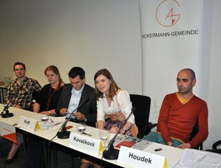 Die Defizite selbst nach der Wende in Tschechien beim Geschichtsunterricht sprach die aus Pilsen stammende und jetzt in München lebende Germanistin Kateřina Kovačková an. Erst im Studium sei sie mit Literatur (z.B. Mühlberger, Preußler) in Kontakt gekommen, in der das Thema „Vertreibung“ (Sehnsucht nach Heimat, Unrecht) angesprochen wurde. „Mit der Buchlektüre hat sich mir eine andere Sichtweise erschlossen, aber auch durch Erzählungen von Vertriebenen aus Böhmen und Mähren“, schilderte sie ihren Zugang zu diesem Teil der deutsch-tschechischen Geschichte. Besonders beim Germanistik-Studium in Deutschland, „beim Seitenwechsel“ habe sie viel dazugelernt. „Das Thema 'Vertreibung' gehört in die öffentliche Diskussion“, appellierte sie an ihre Landsleute. „Die tschechische Gesellschaft ist noch nicht reif, man kann nicht auf Konfrontationskurs gehen. Die gleiche historische Person (Edvard Beneš, Anm. der Redaktion) wird unterschiedlich dargestellt. Die tschechische Gesellschaft muss für bestimmte Themen noch reifen bzw. darauf vorbereitet werden. Und das Thema 'Vertreibung der Deutschen aus Böhmen, Mähren und Schlesien' kann man nicht verschweigen, aber man kann es den Menschen auch nicht um die Ohren schlagen“, vertiefte Kovačková.
