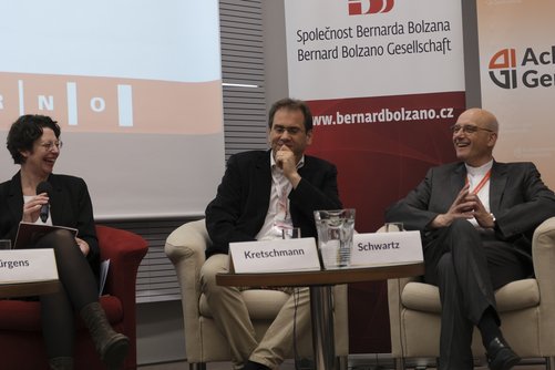 Das abschließende Podiumsgespräch am Sonntagvormittag behandelte die These „Der Wandel ist notwendig – ein Konsens zunehmend schwierig“. Moderiert von Dr. Zuzana Jürgens, der Geschäftsführerin des Adalbert Stifter Vereins, bezogen dazu folgende Personen Position: Dr. Anselm Hartinger, Direktor des Stadtgeschichtlichen Museums Leipzig, Dominik Kretschmann, Leiter der Gedenkstätte der Stiftung Kreisau für Europäische Verständigung, der Soziologe Prof. Dr. András Máte-Tóth aus Szeged, Prof. Dr. Thomas Schwartz, Hauptgeschäftsführer von Renovabis, und der tschechische Ministerpräsident von 2001 bis 2004 Vladimír Špidla.