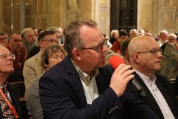 Wie jedes Jahr luden die Ackermann-Gemeinde und die Berrnard-Bolzano-Gesellschaft zu ihrem „Dialog in der Mitte Europas“ am Wochenende um den Palmsonntag nach Brünn. Am Freitagabend begrüßten Albert-Peter Rethmann, der Vorsitzende der Ackermann-Gemeinde, und Matěj Spurný, der Vorsitzende der Bernard-Bolzano-Gesellschaft, im Historischen Sitzungssaal des Neuen Rathauses die gut 150 Teilnehmer zu einem Dialog über Kirche und Politik in Ostmitteleuropa. Die österreichische Botschafterin in Prag Bettina Kirnbauer und der tschechische Botschafter in Wien Jiří Šitler grüßten die Teilnehmer des Symposiums ebenso, wie die das Symposium mittragende Oberbürgermeisterin von Brünn Markéta Vaňková, wenn auch nur per Videobotschaft. Eine Ausnahme stellte in diesem Jahr der wiedergewählte Landeshauptmann Südmährens Jan Grolich dar. Er kam als Podiumsteilnehmer am Samstag früh in den Konferenzraum der Tagung im Hotel International Brno und sprach zu einigen Überlegungen als christlicher Politiker – er ist Mitglied der KDU-CSL. Die deutsche Botschaft in Prag vertrat Susanne Lindsay, die Leiterin des Kultur- und Protokoll-Referats.