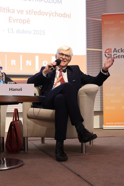 Dazwischen präsentierte Milan Uhde, der 88-jährige Schriftsteller, Politiker und jüngst auch Mitglied des Deutschen Kulturvereins in Brünn, eine ausformulierte Auseinandersetzung mit dem polnischen Philosophen und Politiker der PiS Ryszard Legutko, der in seiner Heimat seit 2005 im Senat saß, kurzzeitig Bildungsminister seines Landes, dann Staatssekretär in der Kanzlei des Präsidenten war und seit 2009 EU-Parlamentarier für seine Partei Recht und Gerechtigkeit (PiS) ist. In einigen Publikationen stellte Legutko die Demokratie und die liberale Gesellschaft in ihrer gegenwärtigen Form in Frage und betonte, dass die Kirche wieder stärker in Machtpositionen auch im Staate kommen müsse. Unterbrochen wurden die Erläuterungen Uhdes, der bei aller Seriosität der Argumente Legutkos auch Gegenpositionen formulierte, von kritischen Bemerkungen von Matěj Spurný, dem Vorsitzenden der Bernard-Bolzano-Gesellschaft und von einer Intervention des ehemaligen 3. stellvertretenden Bürgermeisters der Stadt Brünn in der Amtszeit von Petr Vokřál und einer der treibenden Kräfte für den Brünner Gedenkmarsch seit 2015 Matěj Hollan, der auf Parallelen zu den letzten Entwicklungen in den USA verwies. Er benannte auch eine spezielle Parallele zu Orbans Kurs in Ungarn mit dessen Idee der illiberalen Demokratie. Legutko sei im letzten Jahr von Orbans Stiftung für ein bürgerliches Ungarn der János-Hunyadi-Preis für seine herausragende Arbeit zur Verteidigung der europäischen Werte ausgezeichnet worden.