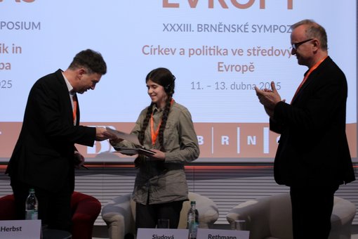 Das Programm umfasste am Samstagvormittag auch wieder die Vorstellung der Siegerbeiträge des mittlerweile 14. Europäischen Essaywettbewerbes für Studierende. Unter der bewährten Moderation von Oliver Herbst wurden die drei Preise zum diesjährigen Thema „Braucht die Politik die Kirche? Braucht die Kirche die Politik?“ verliehen. Den dritten Preis gewann Zuzana Siudová, eine Brünner Studentin der Umweltstudien und Ethnologie, die selbst anwesend war. Der zweite Preis ging an Lara Müller, die in Berlin an der Humboldt-Universität Sozialwissenschaften studiert, der erste Preis dann an Adrian Schroeder, der in Dortmund Immobilienmanagement für Immobilienkaufleute studiert. Beide konnten nicht vor Ort den Preis entgegennehmen, verlasen ihre Beiträge jedoch via Videoverbindung. Als Laudatoren brachten sich neben Rethmann und Spurny auch der Leiter der Bayrischen Repräsentanz in Prag und ehemaliges Mitglied des Europäischen Parlaments Martin Kastler ein. Der Essaywettbewerb ist ein auflockerndes Moment bei jedem der letzten Brünner Symposien mit interessanten Fragestellungen, wie immer nachlesbar auf der Website der Ackermann-Gemeinde.