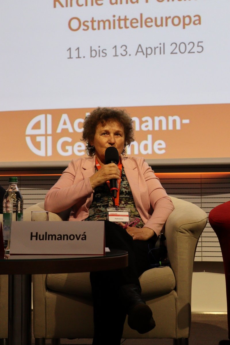 Die Podien bestückt mit wichtigen Persönlichkeiten wie dem Hauptmann Südmährens Jan Grolich, dem Geschäftsführer des Osteuropa-Hilfswerks Renovabis in Freising und Theologen Prof. Thomas Schwartz, der Mitbegründerin der Stiftung Kreisau und Vorstandsmitglied des Clubs katholischer Intelligenz in Warschau Maryna Czaplinska, der Präsidentin des Zentralkomitees der deutschen Katholiken (ZdK) aus Göppingen Irme Stetter-Karp trafen auf Wissenschaftler wie den Brünner Historiker und Philosophen Jiří Hanuš oder Kirchenleute wie die Benediktinerin und Äbtissin der deutsch-tschechischen Abtei Venio aus München Sr. Francesca Šimuniová OSB oder den Dozenten an der Theologischen Fakultät der Universität Tyrnau/Trnava, nordöstlich von Pressburg gelegen, Jozef Žuffa sowie Laien wie die Slowakin Katerina Hulmanová, die als Programmiererin aus Pressburg/Bratislava auch einige Jahre Mitglied des Päpstlichen Rates für die Laien war (Link zum Podium vom Samstag). Jeder hatte interessante Aspekte beizusteuern in einer höchst unterschiedlichen Ausgangslage für die Kirchen, insbesondere der katholischen Kirche, die in Deutschland bei 24 Prozent der Bevölkerung noch Verbreitung findet, in Tschechien nur bei 11 Prozent, allerdings mit einem Schwerpunkt in Südmähren, in der Slowakei 68 Prozent, in Polen 72 Prozent. Hulmanová sprach kurz an, dass es in der Slowakei keine Kirchensteuer gäbe. Der Staat bezahle die Kirchen. Umso erstaunlicher die klare Formulierung der Slowakischen Bischofskonferenz, dass die Ukraine von Russland angegriffen worden sei. Oder die interessante Information von Frau Stetter-Karp, die anhand einer Sozialstudie bekanntmachte, dass die Katholiken in Deutschland den höchsten Anteil an ehrenamtlichem Engagement in der Bevölkerung leisteten.