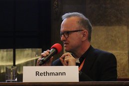Das Eingangsgespräch, das die Rolle der Kirche in den säkularen Gesellschaften in Ostmitteleuropa einführte, bestritt Professor Tomáš Petráček, der Leiter des Lehrstuhls für Kultur- und Religionswissenschaften an der Universität in Königgrätz/Hradec Králové, mit den beiden Köpfen des Symposiums, wobei sowohl Rethmann als auch Spurný an der Karluniversität gelehrt hatten bzw. dies noch tun. Ein akademisches Gespräch also, das vollumfänglich auf Tschechisch geführt wurde, was es trotz Übersetzung ins Deutsche für die nur deutsch verstehenden Teilnehmer etwas mühsam machte, da die Feinheiten in einer Simultanübersetzung häufig weggeschliffen werden. Rethmann griff das Diktum Ernst-Wolfgang Böckenfördes auf, dass der „freiheitliche und säkulare Staat von Voraussetzungen lebt, die er selbst nicht schaffen oder garantieren kann“ und ergänzte für sich auch schon, dass diese Voraussetzungen vor allem die Kirche liefere. Mittlerweile müsse man aber auch konstatieren, dass nicht nur oder sogar immer weniger die Kirchen dieses Fundament der Demokratie lieferten. Spurný beschrieb die Ausgangsfrage des Symposiums damit, dass bestimmte Entwicklungen in der Region betrachtet werden sollen. In Polen, in Ungarn und natürlich auch in Russland bemerke man eine dominante Rolle der Kirche in den politischen Prozessen dort. Was führe die Vertreter der Kirchen dazu, völkisches Gedankengut zu verbreiten und autoritäre Regime zu unterstützen? Diese Beobachtung sei aber nicht auf Ostmitteleuropa beschränkt. Die Vorgänge in Amerika in den letzten Monaten zeigten, dass es sogar eine globale Erscheinung sei. „Wir werden über die Wurzeln sprechen. Diese Fragen haben mit der Krise der liberalen Demokratie zu tun und mit der Rolle der Kirchen in dieser turbulenten Zeit. Diese Rolle darf vielschichtig und strittig sein.“