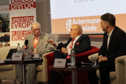 Und schließlich fand ein Gespräch geführt durch den Diplomaten Jan Šícha statt, das sich mit dem Wirken des Abtes Anastáz Opasek (1913-1999) vor allem nach 1969 auseinandersetzte. Der 1947 zum 60. Abt gewählte und dann 1993 zum ersten Erzabt des Klosters Breunau/Břevnov erhobene Anastáz (Johann Adalbert/Jan Vojtěch) Opasek wurde 1949 verhaftet, zu lebenslänglich Haft verurteilt und kam 1960 auf Bewährung frei, verbunden mit dem Verbot der Priestertätigkeit. Er wurde Bauarbeiter, bis er 1968 kurz in sein Kloster zurückkehren konnte. 1969 ging Abt Opasek ins Exil nach Westdeutschland, lebte in der Benedektinerabtei Rohr, die die vertriebenen sudetendeutschen Mitbrüder unterhielten, zu denen er sich gesellte. Wichtig für den „christlichen Kampf für die tschechische Sache“, wie die Gesprächsankündigung im Programm verriet, war jedoch die Gründung der katholischen Laienorganisation „Opus Bonum“ 1972 in Frankfurt/Main, die Abt Opasek mit dem Theologen Vladimir Neuwirth (1921-1995) realisierte und die ab 1978 Exiltreffen im kleinen Ort Franken in Bayern abhielt. Von diesen Treffen berichteten Lída Rakušanová, Journalistin ab 1975 bei Radio Free Europe und Zeitzeugin, und der Historiker am Institut für das Studium totalitärer Regime in Prag Petr Placák, der ein Buch über Abt Opasek geschrieben hat. Opus Bonum konnte aber auch deswegen funktionieren, weil die Ackermann-Gemeinde damals wesentliche Unterstützung leistete. Die eigentliche Seele war Abt Opasek, der es verstand Menschen zusammenzubringen, die sonst nicht am gleichen Tisch sitzen konnten. Rakušanová berichtete: „Es kamen alljährlich in Franken Sieger und Niedergeschlagene der 1950er Jahre zusammen. Die Sieger waren die Kommunisten, die 1968 die Partei verlassen hatten und ins Exil gegangen waren, die Niedergeschlagenen jene Tschechen, die in den 1950er Jahren bereits das Land verlassen hatten. Sie waren fähig miteinander zu sprechen und sich zu verstehen. Abt Opasek konnte Wunder vollbringen.“ Placák, der den Nachlass Opaseks und von Opus Bonum auswertete, fügte hinzu, dass es Abt Opasek mit seinen Freunden gelang, das abgeschlossene tschechoslowakische Exil miteinander ins Gespräch zu bringen und damit wirksam zu werden für die Zeit nach der Samtenen Revolution. Und vor einer ähnlichen Aufgabe der Verständigung stehe man heute wieder.