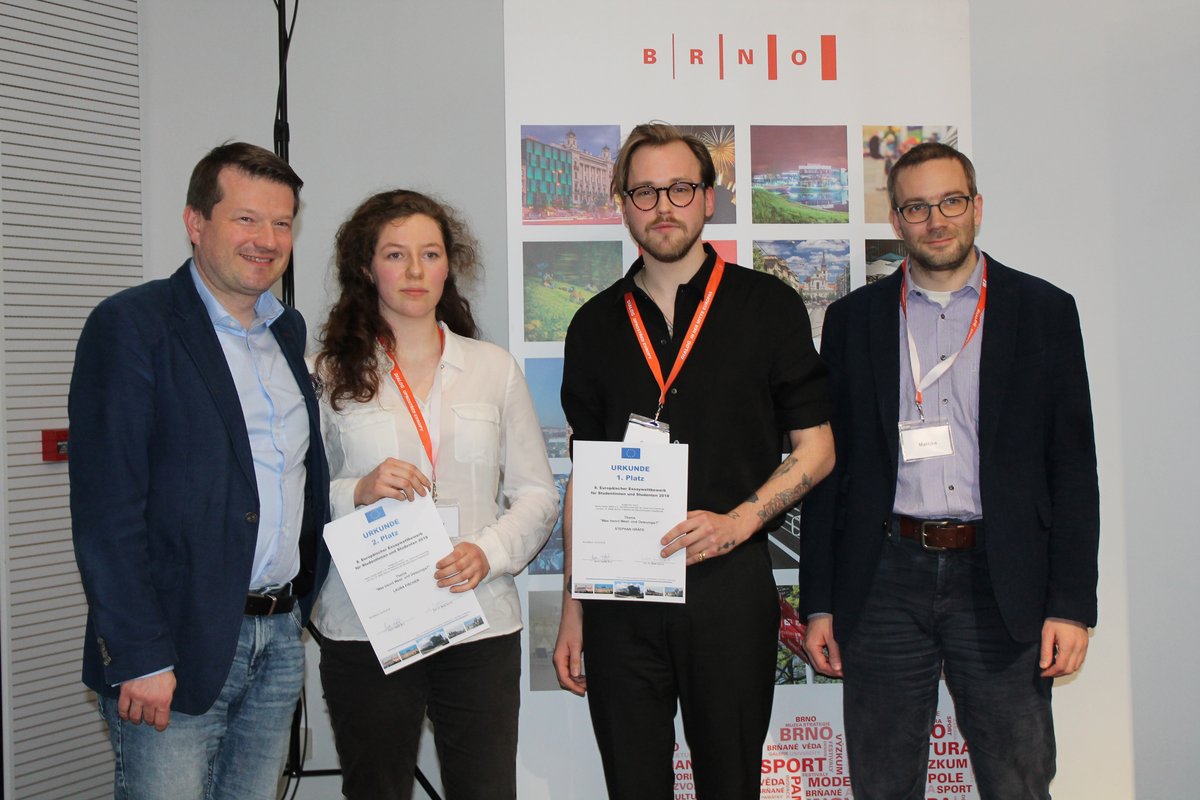 Mit der feierlichen Überreichung der Urkunden an die beiden anwesenden Preisträger Laura Fischer und Stephan Gräfe durch Martin Kastler und Ondřej Matějka endete der 8. Europäische Essaywettbewerb.