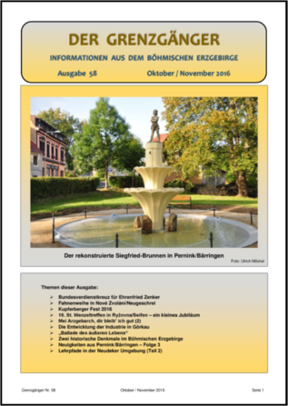 Der Grenzgänger. Die Internet-Zeitschrift aus dem böhmischen Erzgebirge, kostenlos abrufbar als PDF-Datei unter: www.boehmisches-erzgebirge.cz/grenzgaenger.html.