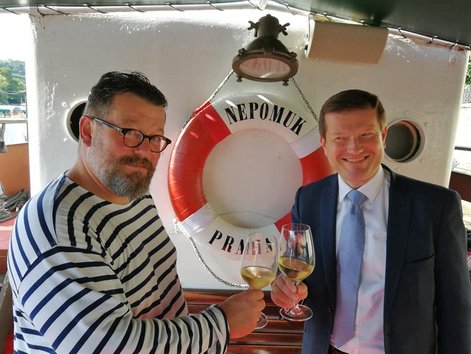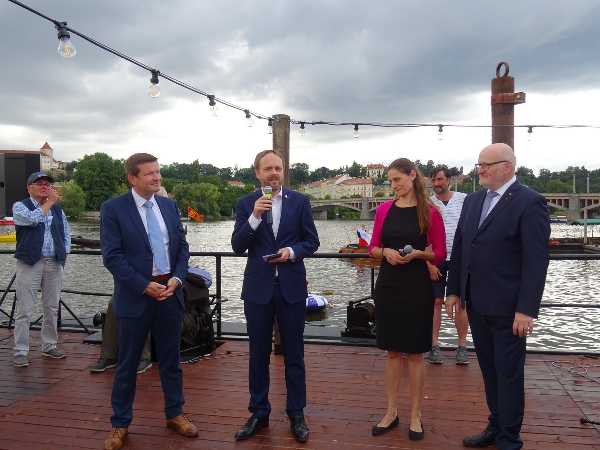 Der Attaché Friedrich Lennkh von der österreichischen Botschaft in Prag wiederum vertrat mit rot-weiss-rot natürlich sein Heimatland auf der Moldau. Europa müsse nach seinen Worten immer wieder aufs Neue gefestigt werden, da es Gefahren in sich birgt und nationalistische Tendenzen in ihm schlummern. Um dagegen ein Zeichen zu setzten, darum habe er sich aufs Boot gesetzt.