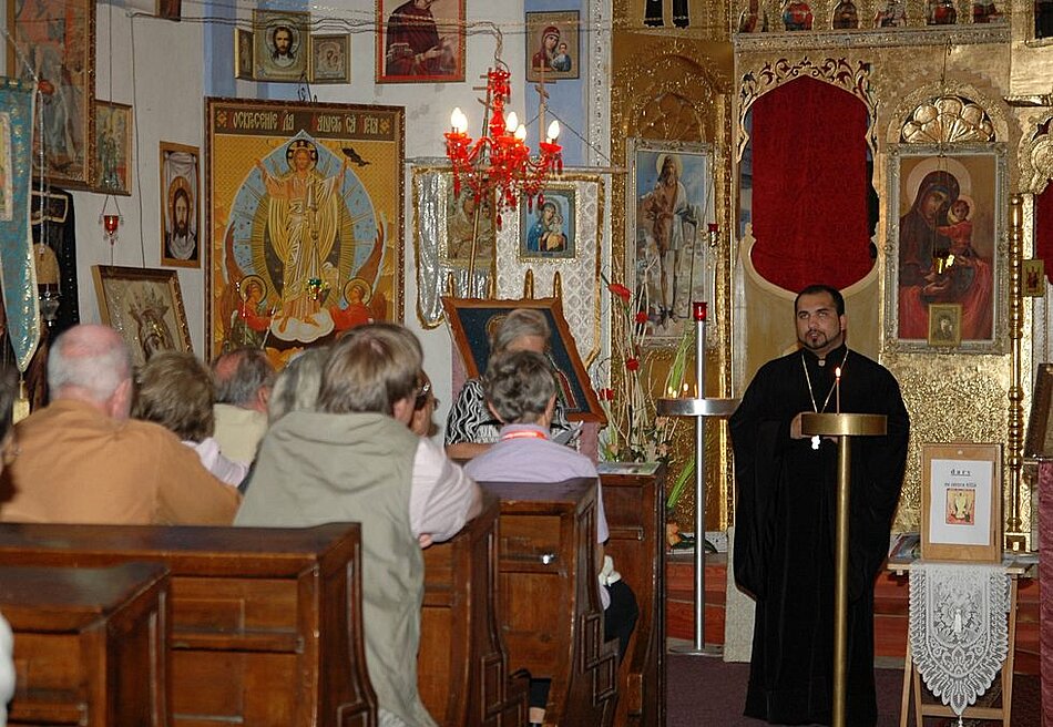 In einer Sternfahrt besuchten neun Gruppen Einrichtungen der sozialen und pastoralen Arbeit in der Diözese Pilsen. Unter anderem stellte Pater David Dudáš die orthodoxe Gemeinde Rokycany vor.