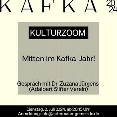 Herzliche Einladung zum Kulturzoom am Dienstag, den 2. Juli 2024 ab 20:15 Uhr! zum Thema "Mitten im Kafka-Jahr"