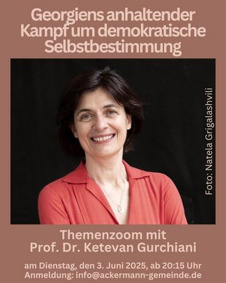 Herzliche Einladung zum Themenzoom am Dienstag, den 3. Juni ab 20:15 Uhr, bei dem wir uns mit Frau Prof. Dr. Ketevan Gurchiani mit Georgiens anhaltendem Kampf um demokratische Selbstbestimmung beschäftigen werden.