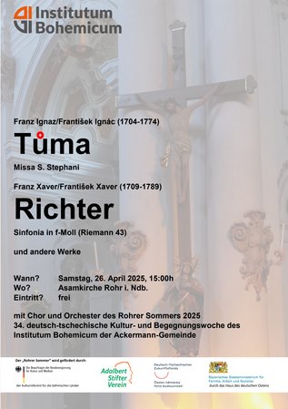 Zur Aufführung kommen die Missa S. Stephani von Franz Ignaz/František Ignac Tůma (1704-1774), die Sinfonia in f-Moll von Franz Xaver/František Xaver Richter (1709-1789) und weitere Werke.