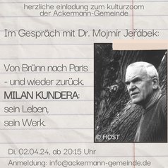 Einladung zum Kulturzoom über Milan Kundera am 02. April