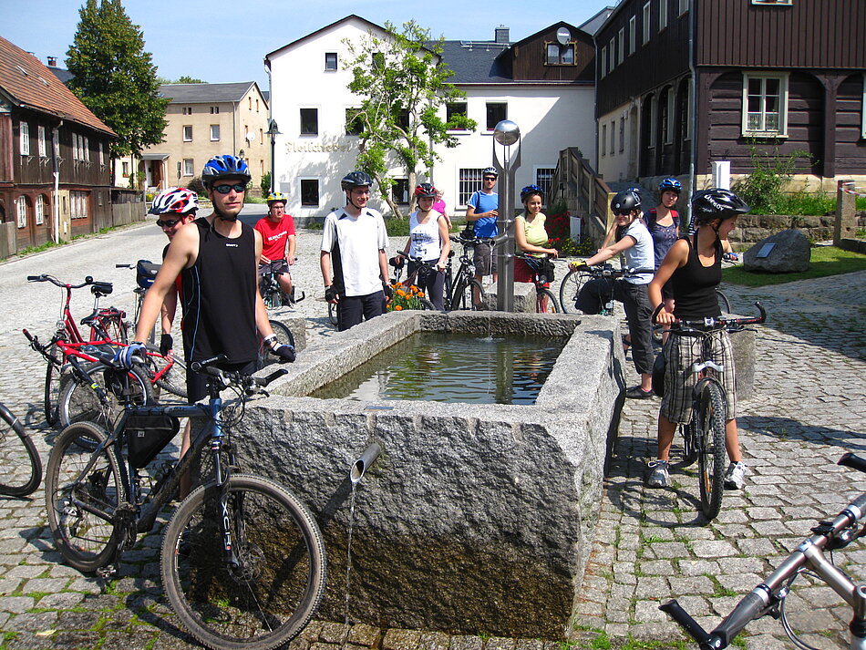 Die fünfte Spurensuche radelte in diesem Sommer durch den Schluckenauer Zipfel in Nordböhmen. Wir Radwanderer fanden Unterkunft in der Nixdorfer (Mikulášovice) Pension ‚Paradies der Pilger’. Über das Leben in dieser Gegend erfuhren wir auch Dank der freundlichen und offenen Stammgäste der Pension. Nicht einmal die Sprachbarriere stellte ein Hindernis dar. Durch diese Bekanntschaft wurde es uns ermöglicht die wunderschöne Kirche des hl. Nikolaus in Nixdorf zu besichtigen. In der gesamten Schluckenauer Gegend gibt es zahlreiche Patrioten mit und von denen wir vieles Interessantes sehen und erfahren durften Der engagierteste Bewohner - Herr Leksa aus Niedereinsiedel - konnte stundenlang begeistert sowohl von Uhrwerken als auch von der Eisenbahnstrecke an der Grenze erzählen.