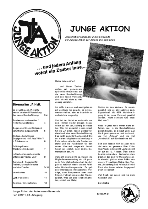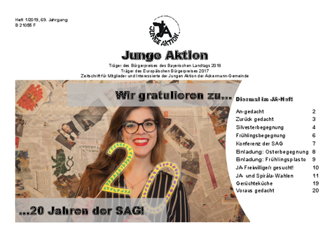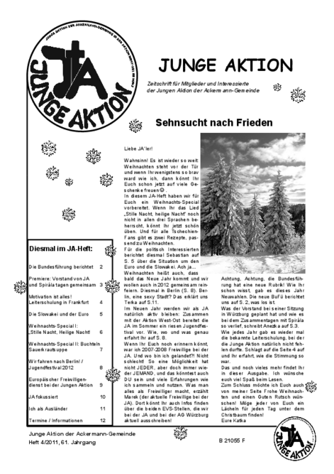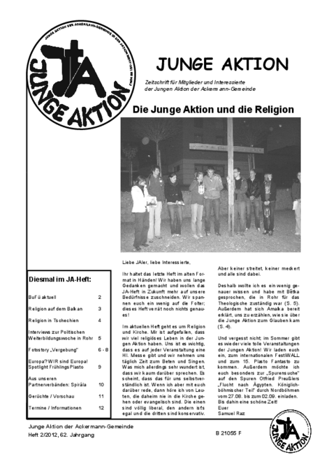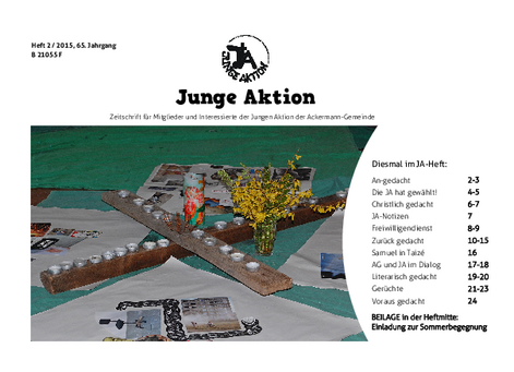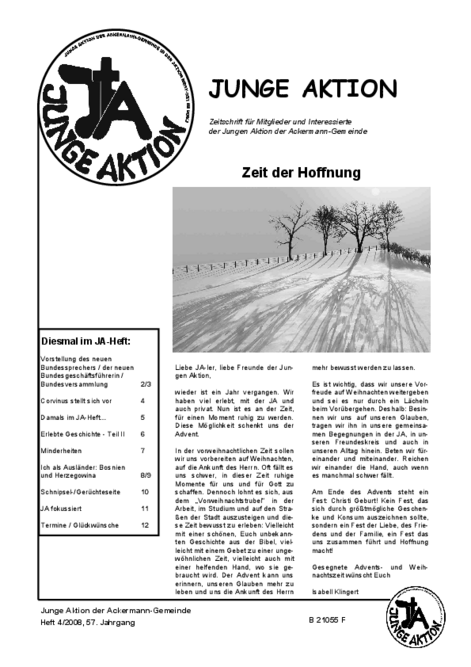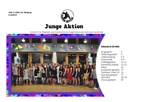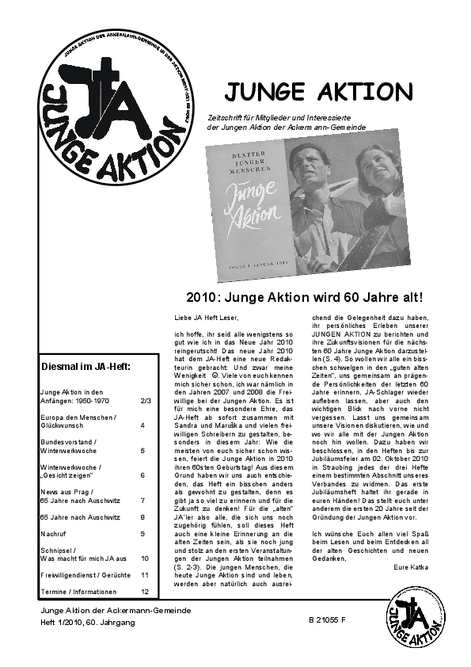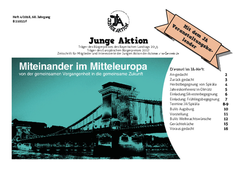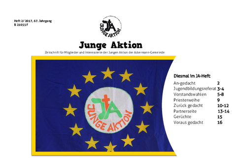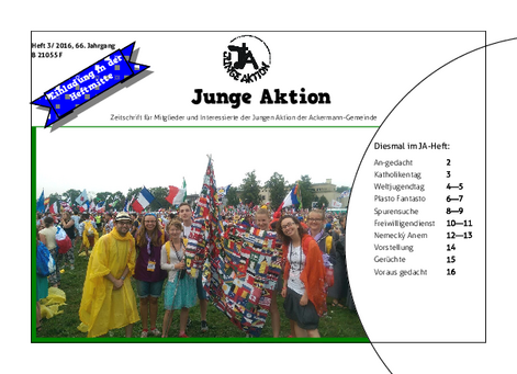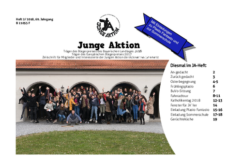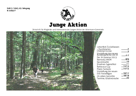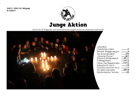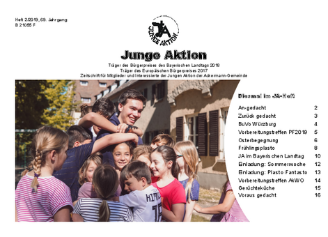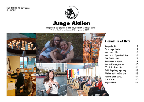 Bis Ende 2019 wurde in jedem Quartal eine kleine Zeitschrift veröffentlicht, das Heft der Jungen Aktion. Hier geht es zum Archiv.