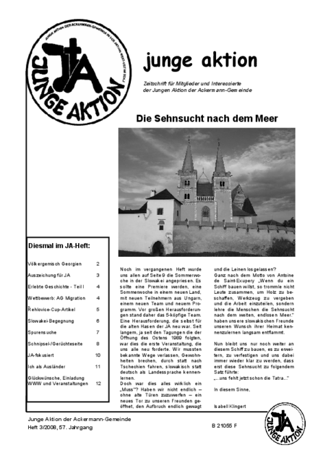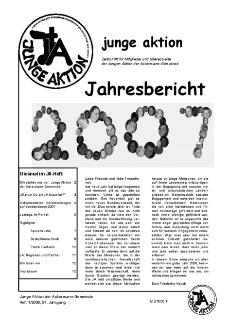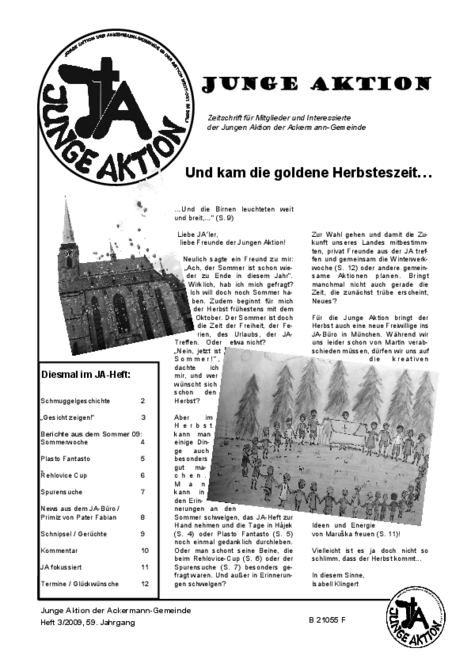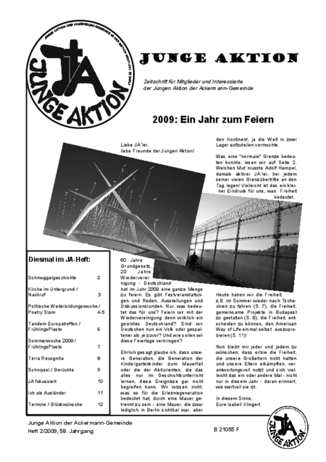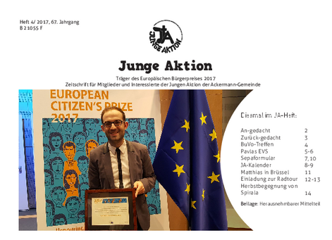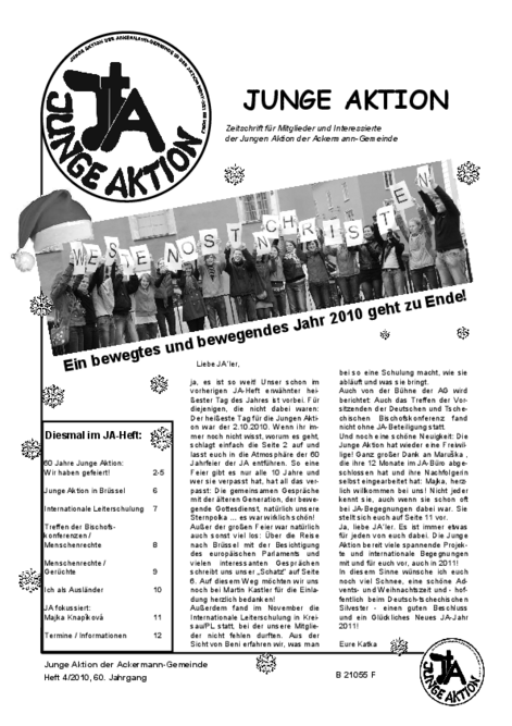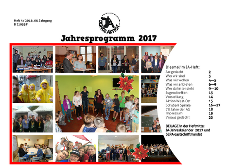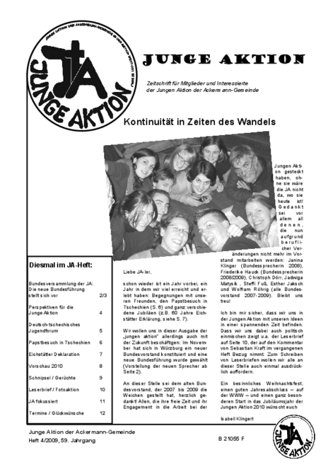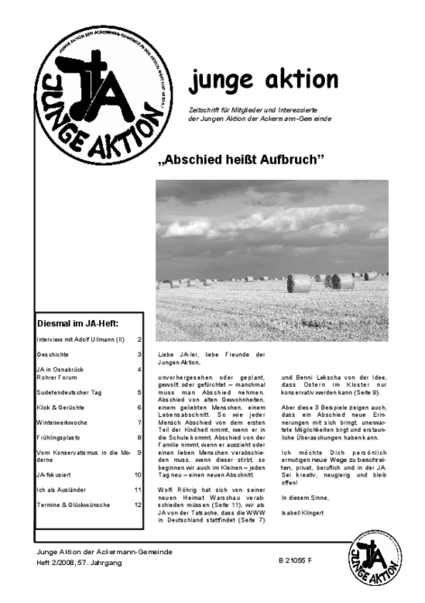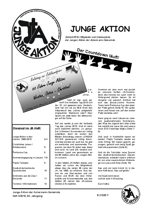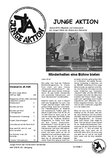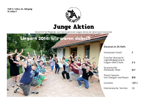 Bis Ende 2019 wurde in jedem Quartal eine kleine Zeitschrift veröffentlicht, das Heft der Jungen Aktion. Hier geht es zum Archiv.